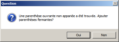 Si une erreur s'est produite pendant la frappe un message prévient l'utilisateur d'une action éventuelle qu'il sera libre d'accepter ou pas :