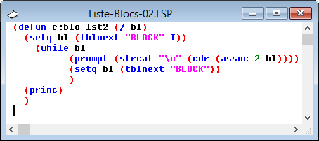 Le principe de cette routine est de "scanner" la table des blocs enregistrés dans le fichier dessin.