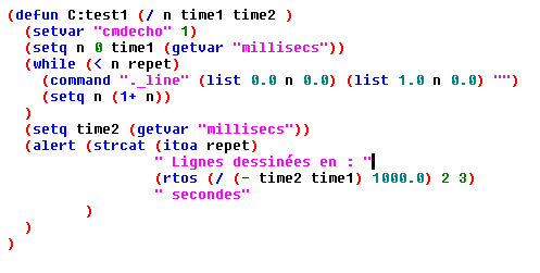 Pour mesurer le temps passé, c'est la variable "millisecs" qui est interrogée deux fois, au lancement puis une fois que les lignes sont dessinées.