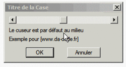 Pour ce composant, j'ai eu bien des difficultés, car je ne l'ai jamais utilisé dans mes programmes personnels et il m'a fallu lire des pages et des pages pour en arriver à quelque chose qui fonctionne.