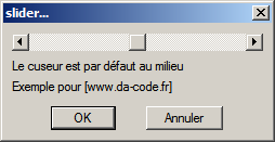 Ce composant slider est utilisé pour faire défiler un curseur le long d'une barre et de mémoriser sa position sur la barre, entre deux valeurs extrêmes.
