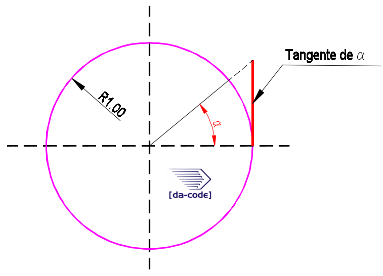 On parle du cercle de rayon "unité", et la variation dépend du quadrant dans lequel se trouve la valeur angulaire.