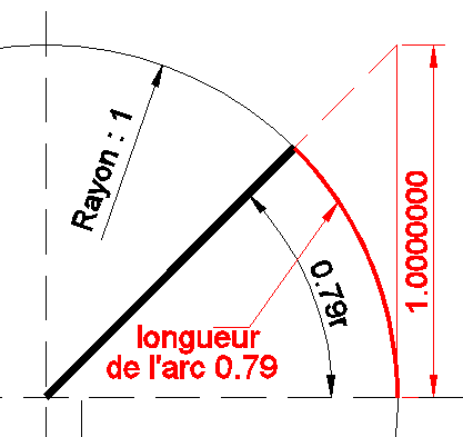 1.0 est la valeur de la tangente de l'angle 0.79 (0.785398..)
