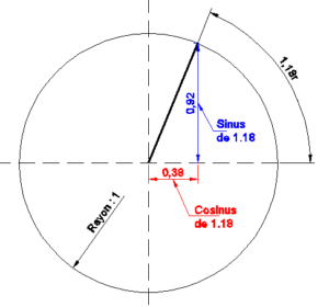 Pour mémoire : représentation des sinus et cosinus dans le cercle de rayon 1